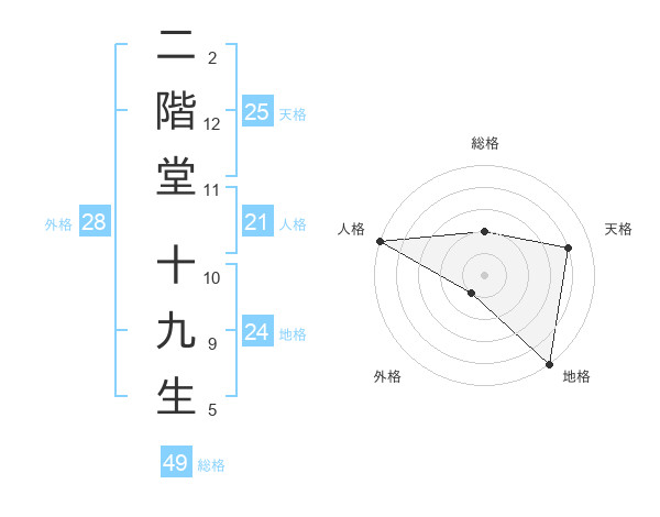 二階堂 十九生さんを姓名の画数から五運を鑑定