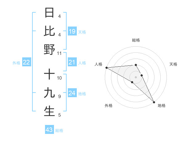 日比野 十九生さんを姓名の画数から五運を鑑定