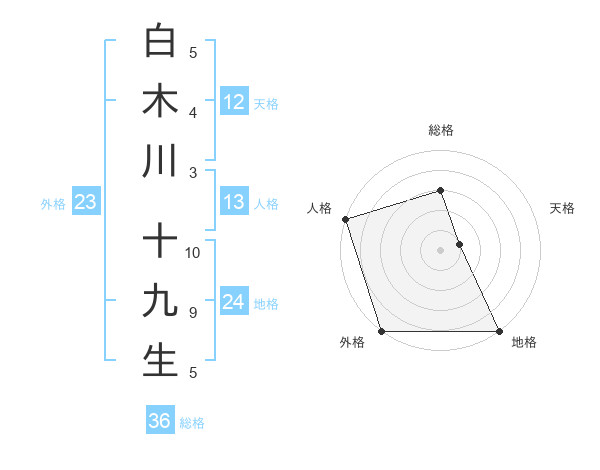 白木川 十九生さんを姓名の画数から五運を鑑定