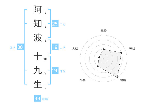 阿知波 十九生さんを姓名の画数から五運を鑑定