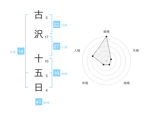 古沢 十五日さんの総格は41画の5点!