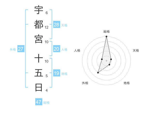 宇都宮 十五日さんを姓名の画数から五運を鑑定