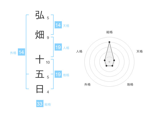 弘畑 十五日さんを姓名の画数から五運を鑑定
