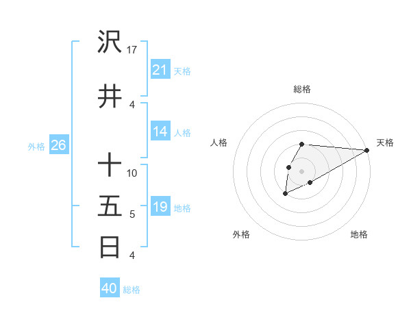 沢井 十五日さんを姓名の画数から五運を鑑定