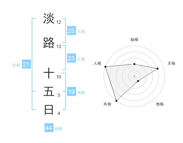 淡路 十五日さんの総格は44画の2点!