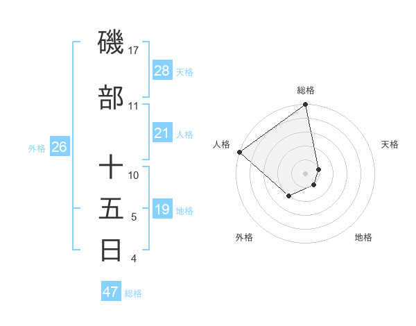 磯部 十五日さんの総格は47画の5点