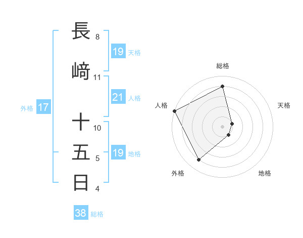 長﨑 十五日さんを姓名の画数から五運を鑑定