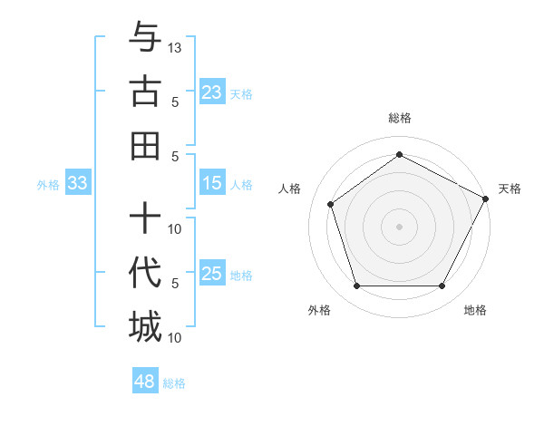 与古田 十代城さんを姓名の画数から五運を鑑定