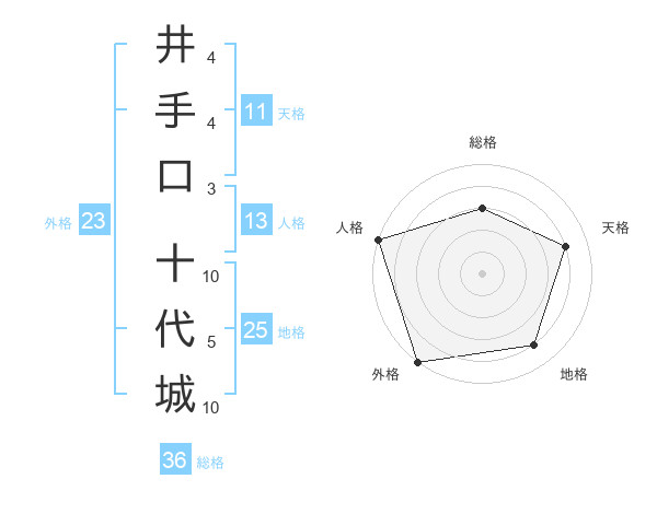 井手口 十代城さんを姓名の画数から五運を鑑定