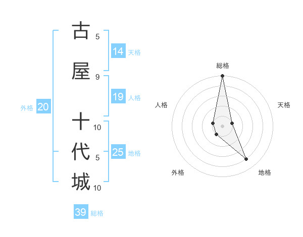 古屋 十代城さんを姓名の画数から五運を鑑定