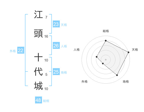 江頭 十代城さんを姓名の画数から五運を鑑定