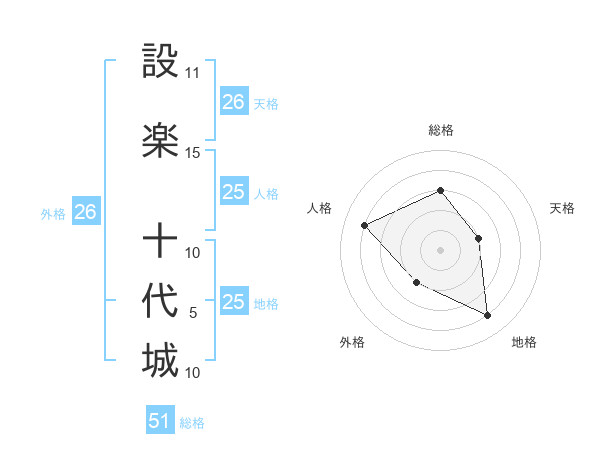 設楽 十代城さんを姓名の画数から五運を鑑定