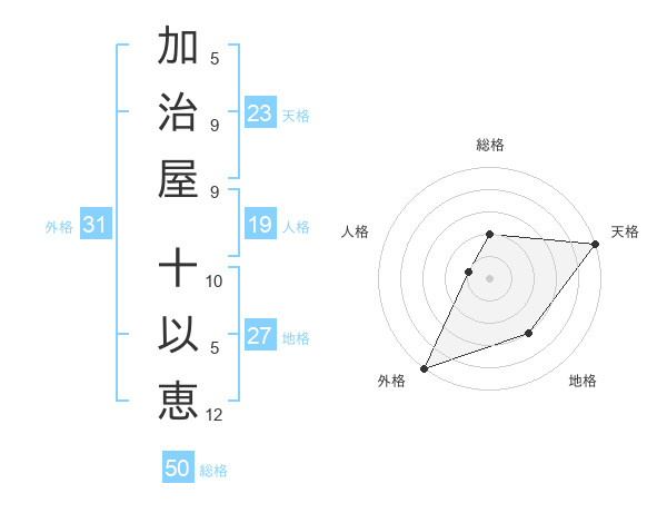 加治屋 十以恵さんを姓名の画数から五運を鑑定