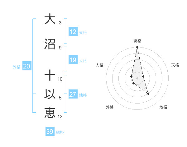大沼 十以恵さんを姓名の画数から五運を鑑定