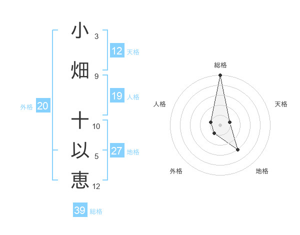 小畑 十以恵さんを姓名の画数から五運を鑑定