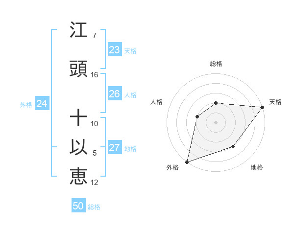 江頭 十以恵さんを姓名の画数から五運を鑑定