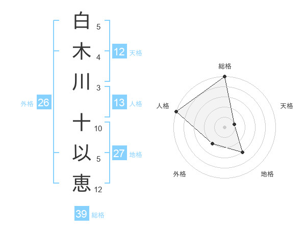 白木川 十以恵さんの総格は39画の5点!