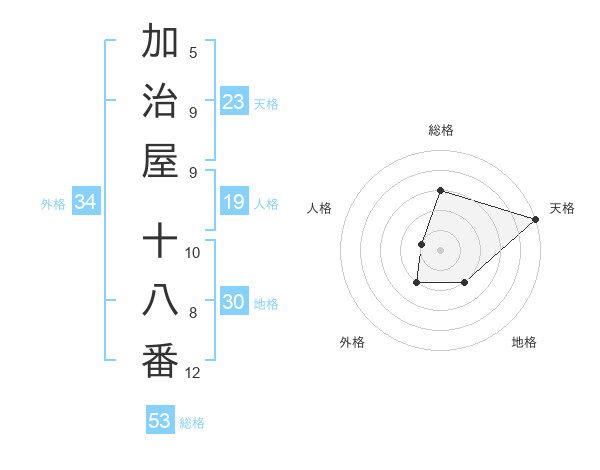 加治屋 十八番さんを姓名の画数から五運を鑑定