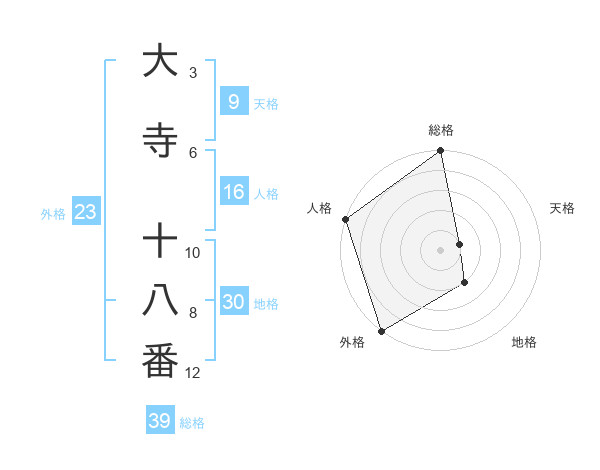 大寺 十八番さんを姓名の画数から五運を鑑定