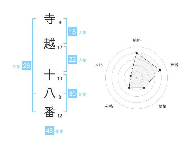 寺越 十八番さんを姓名の画数から五運を鑑定