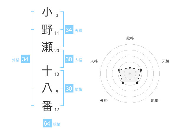 小野瀬 十八番さんの総格は64画の1点
