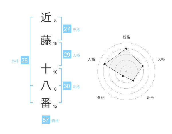 近藤 十八番さんの総格は57画の4点!