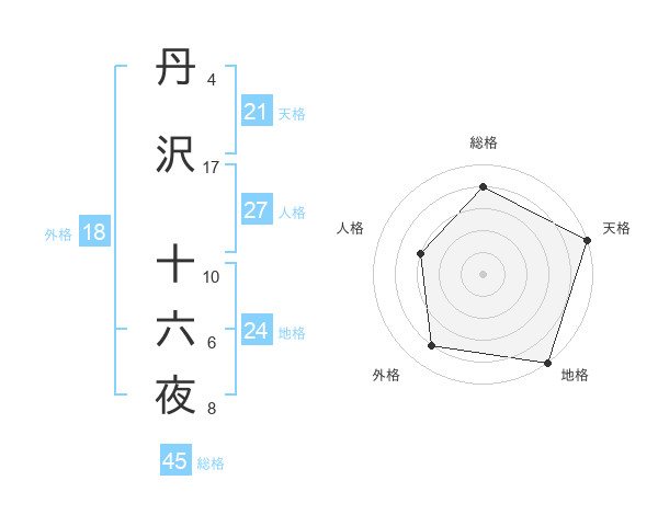 丹沢 十六夜さんを姓名の画数から五運を鑑定