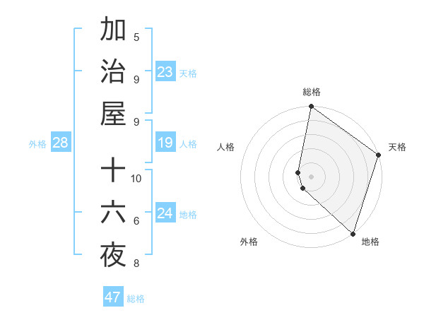 加治屋 十六夜さんの天格は23画の5点!