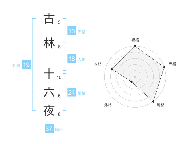 古林 十六夜さんの天格は13画の5点!
