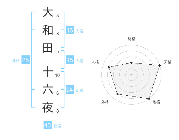 大和田 十六夜さんを姓名の画数から五運を鑑定