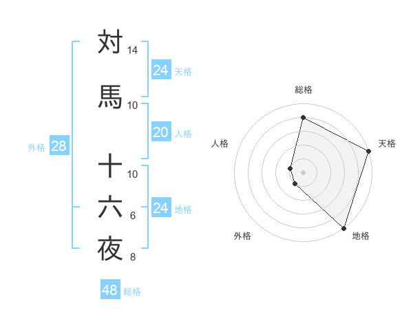 対馬 十六夜さんを姓名の画数から五運を鑑定