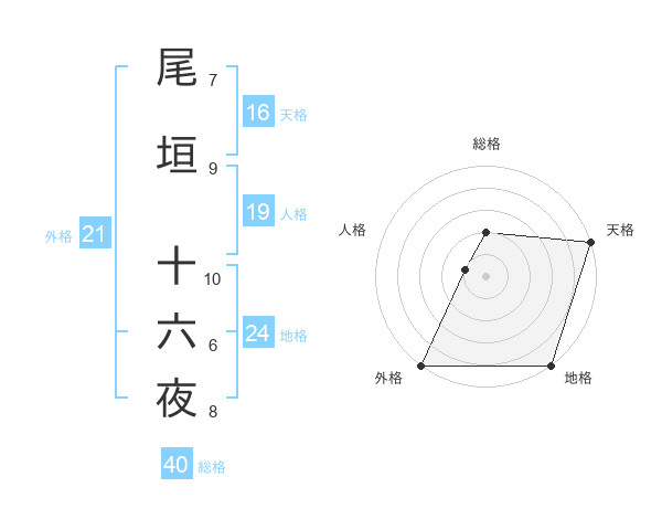 尾垣 十六夜さんの外格は21画の5点!