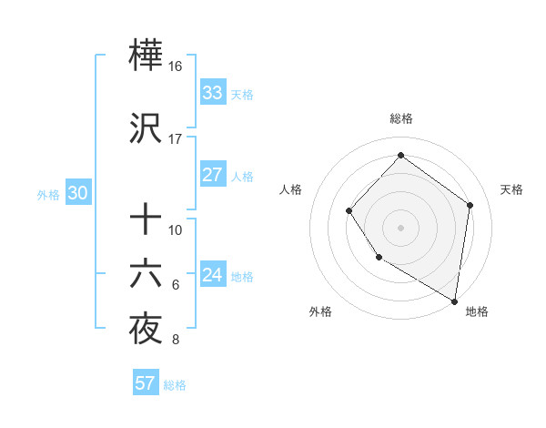 樺沢 十六夜さんを姓名の画数から五運を鑑定