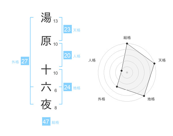 湯原 十六夜さんの総格は47画の5点!