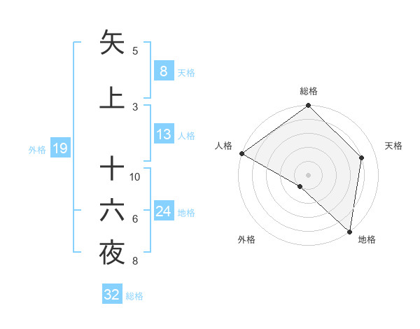 矢上 十六夜さんの総格は32画の5点!