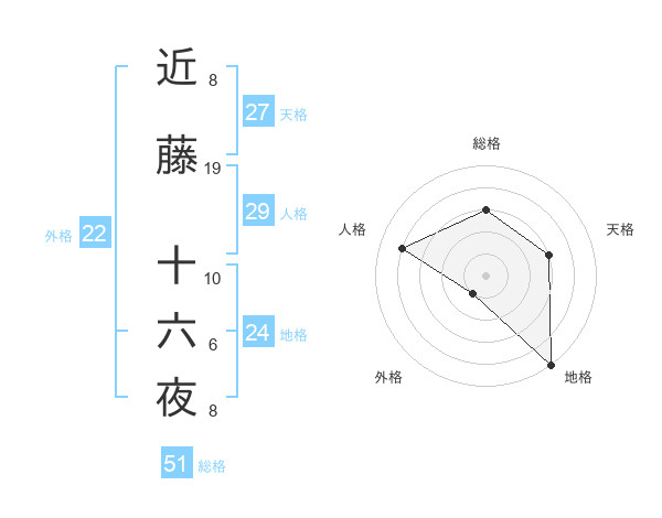 近藤 十六夜さんの総格は51画の3点!