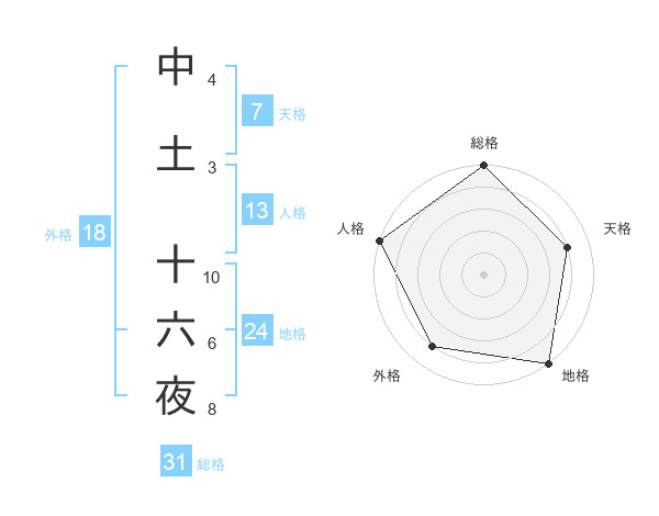 中土 十六夜さんの総格は31画の5点!