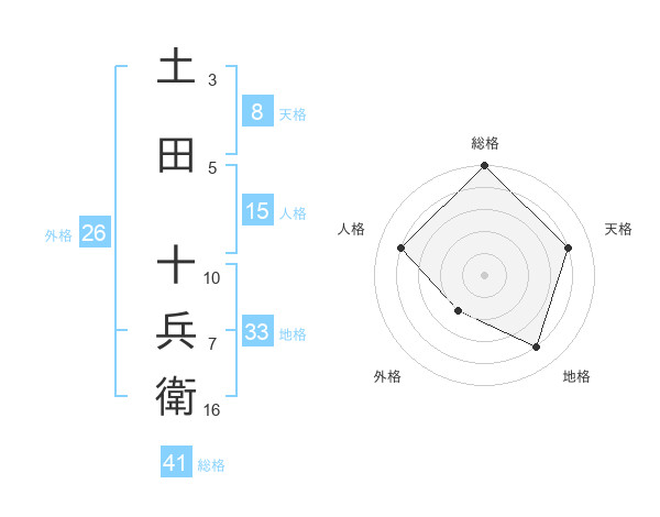 土田 十兵衛さんを姓名の画数から五運を鑑定