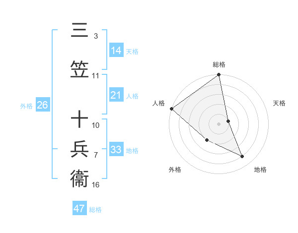 三笠 十兵衞さんの総格は47画の5点!