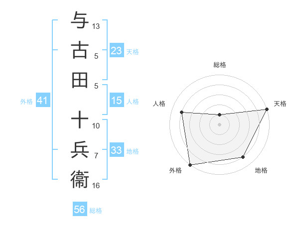 与古田 十兵衞さんを姓名の画数から五運を鑑定