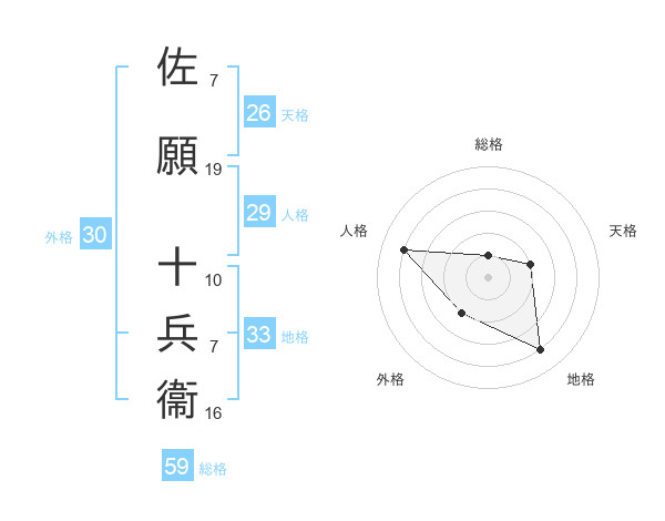 佐願 十兵衞さんを姓名の画数から五運を鑑定
