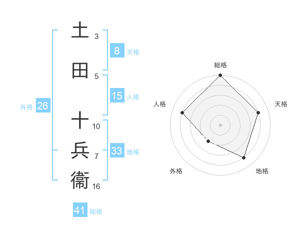 土田 十兵衞さんを姓名の画数から五運を鑑定
