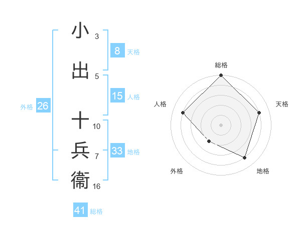 小出 十兵衞さんの地格は33画の4点!