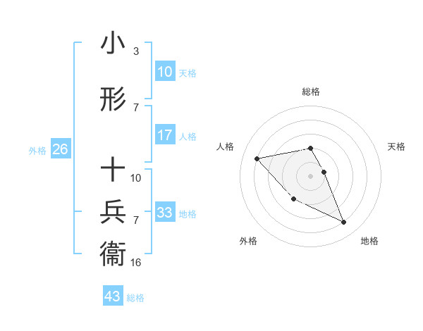 小形 十兵衞さんの総格は43画の2点!