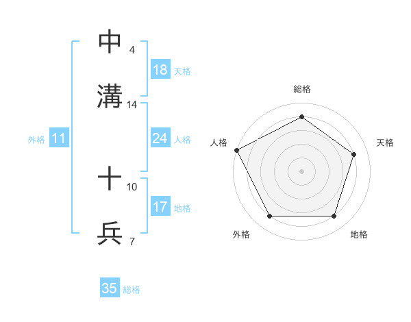 中溝 十兵さんの天格は18画の4点!