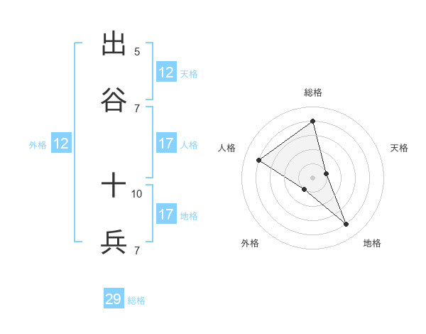 出谷 十兵さんの総格は29画の4点!
