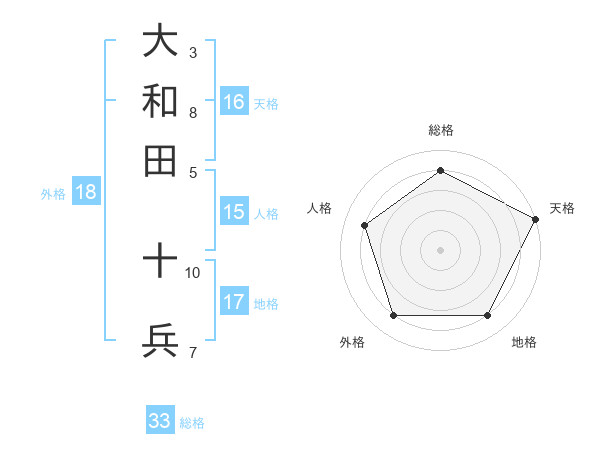 大和田 十兵さんを姓名の画数から五運を鑑定