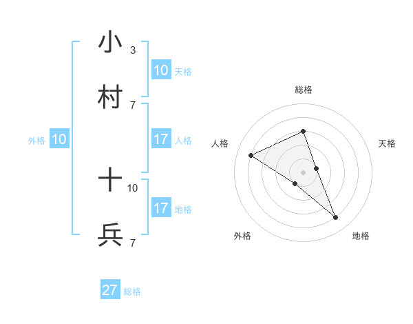 小村 十兵さんの総格は27画の3点!