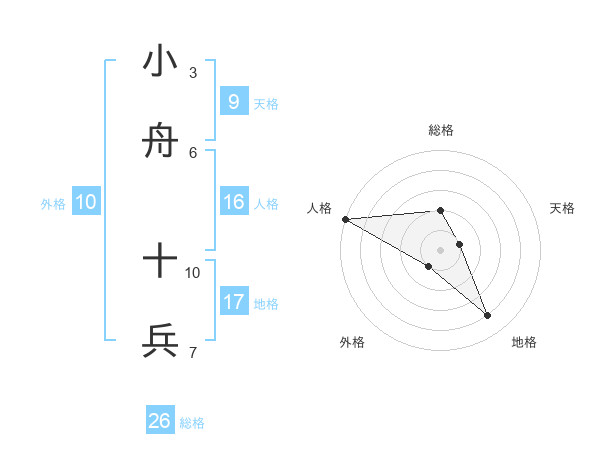 小舟 十兵さんの総格は26画の2点!
