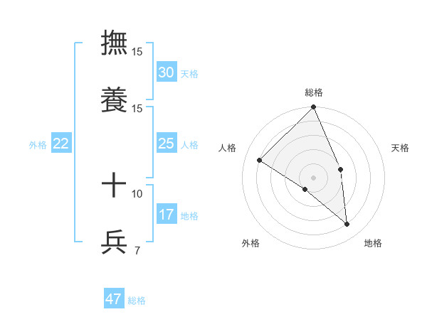 撫養 十兵さんの総格は47画の5点!